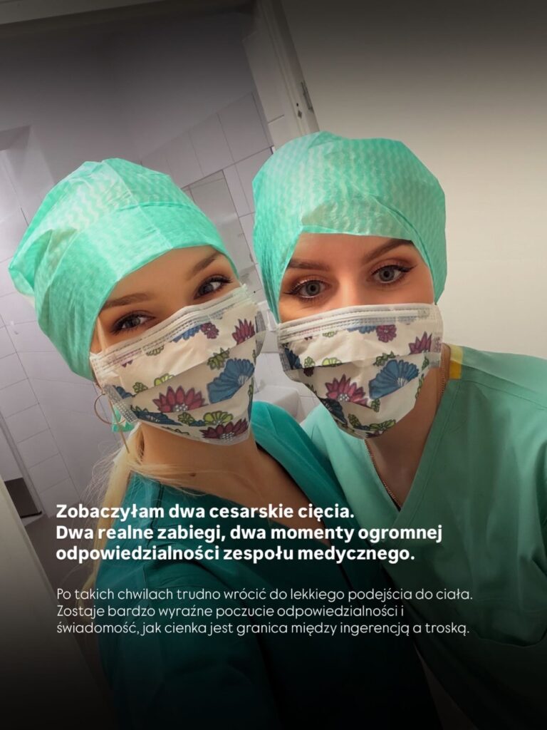 Podczas praktyk miałam okazję uczestniczyć w porodach naturalnych oraz porodach poprzez cesarskie cięcie. I to doświadczenie zostaje w człowieku na zawsze. Nie da się tego „obejrzeć” jak procedury w podręczniku. Tu jest życie – dosłownie. Emocje, napięcie, odpowiedzialność, cisza sali operacyjnej i pierwszy krzyk nowego człowieka. To momenty, które uczą ogromnej pokory do ciała, fizjologii i ludzkiej siły.