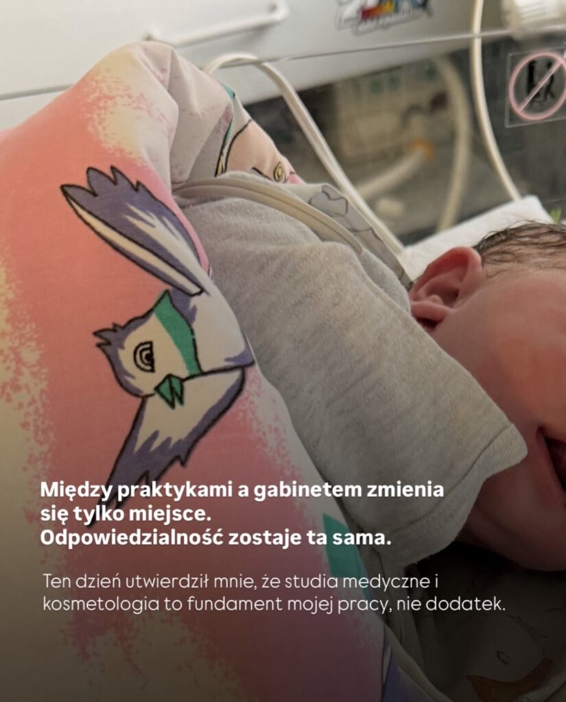 Praktyki w szpitalu uczą mnie też ogromnej empatii. Widzę różne historie, różne emocje, różne momenty życia. To uczy uważności i miękkości – cech, które w medycynie i kosmetologii są równie ważne jak wiedza techniczna.